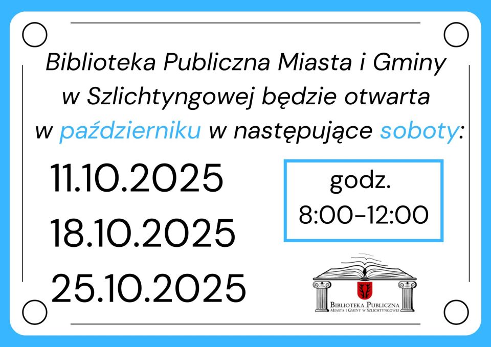 • Biblioteka będzie otwarta w wyznaczone soboty!!!